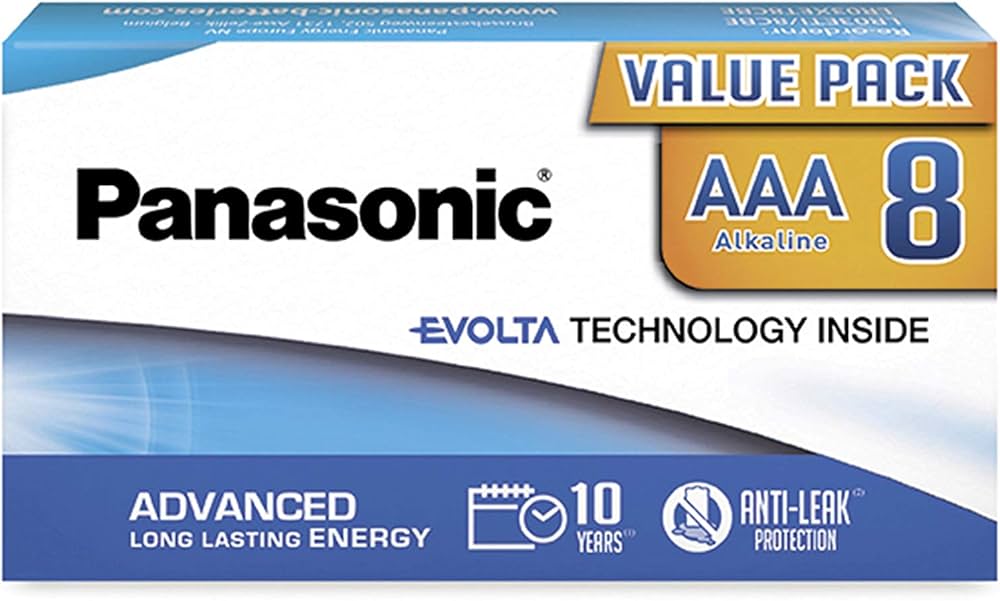 8 stk 1.5V AAA (LR03) alkaline rafhlöður frá Panasonic; EVOLTA.