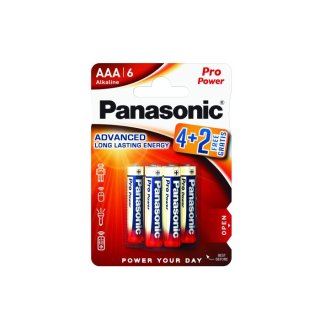 6 stk 1.5V AAA (LR03) alkaline rafhlöður frá Panasonic; Pro Power.